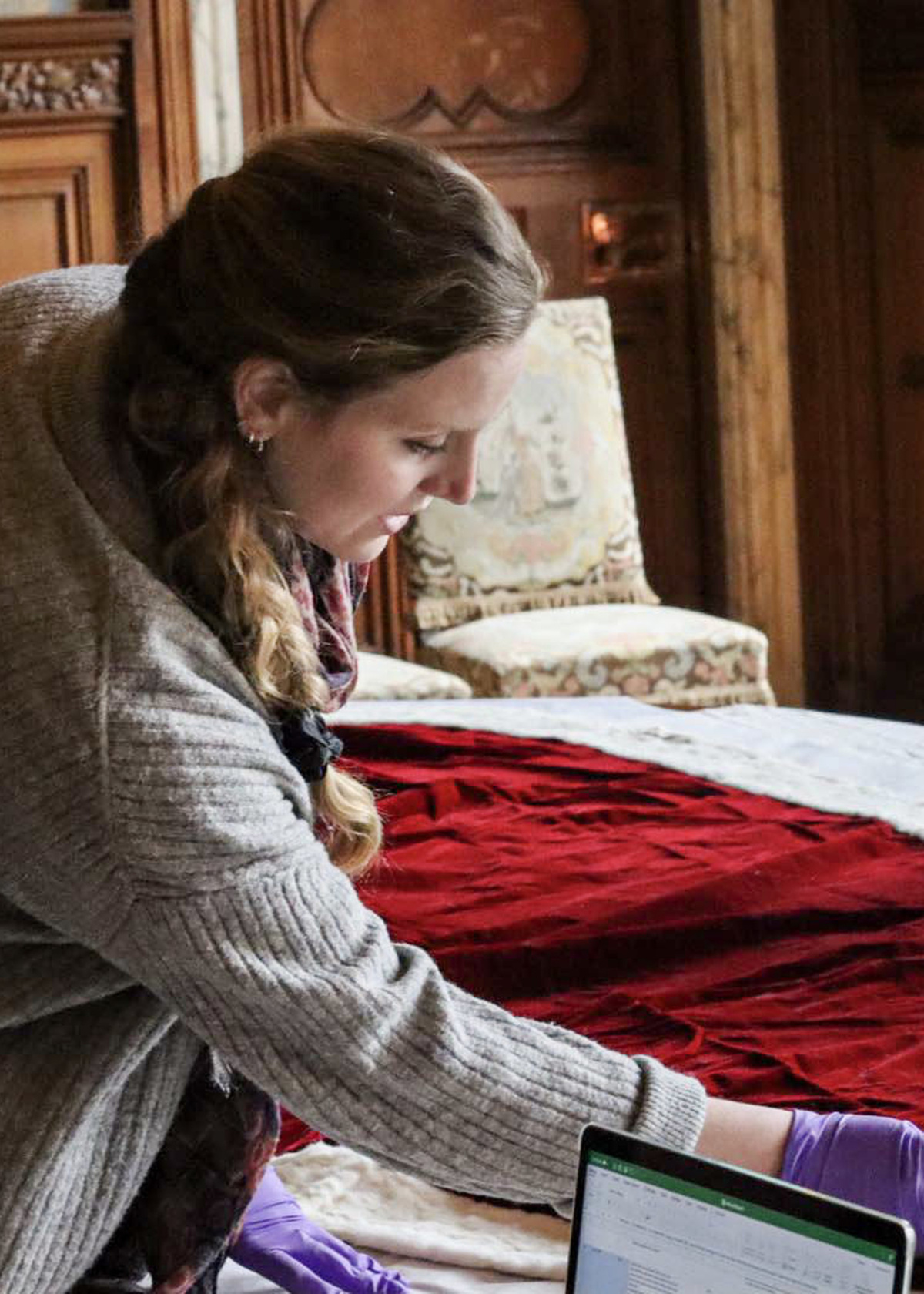 It was my pleasure to participate in the work placement at Mount Stuart in collaboration with the University of Glasgow’s Dress and Textile Histories postgraduate programme. Over the course of four months, I studied an incredible piece of Bute family history through alterations, portraiture, and archival research. For over 250 years, Mount Stuart has preserved the coronation robes made in 1761 worn by Mary, Countess of Bute, for the coronation of George III. These robes were worn by multiple marchionesses for coronations, portraits, and important events, most recently for the coronation of George VI in 1937. Dress history can give us insight into individuals throughout history and the robes provide us with details about the Bute family women. As a dress historian this project was a dream!
