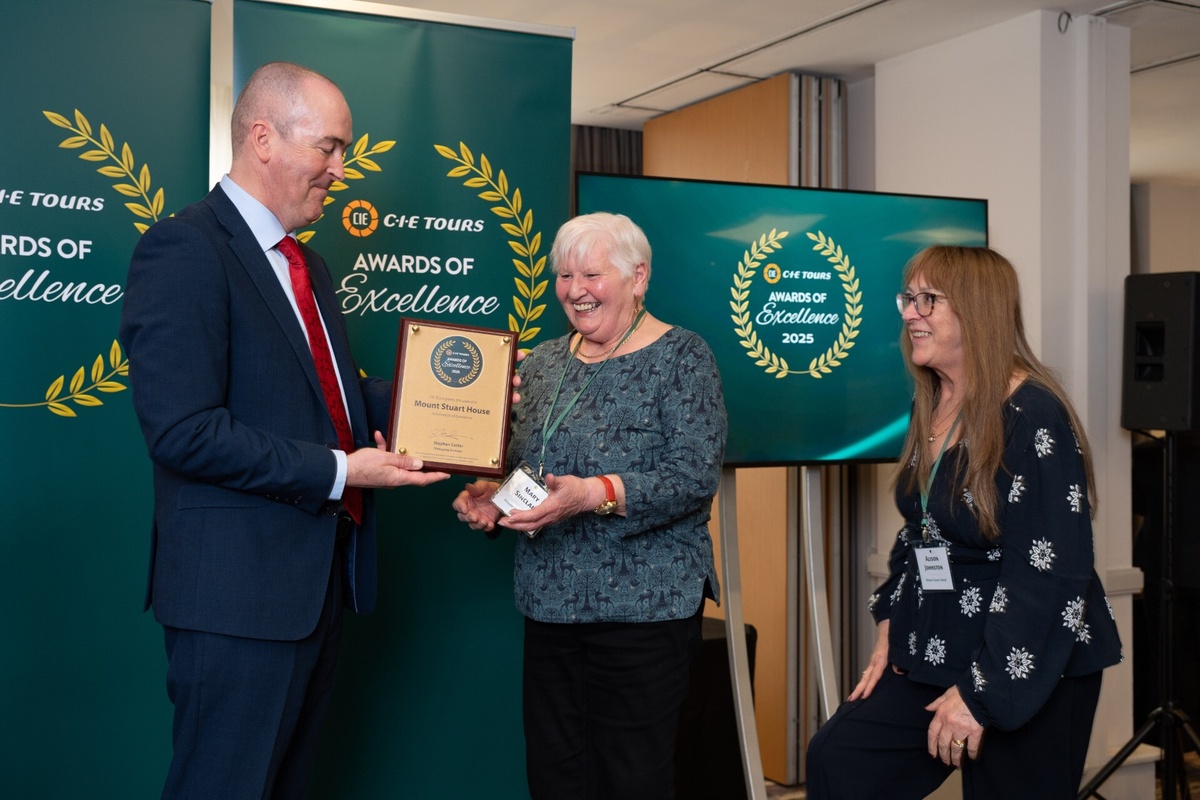 Images: CIE Tours’ Managing Director, Stephen Cotter with Mary Sinclair and Alison Johnston from the Mount Stuart Guiding Team